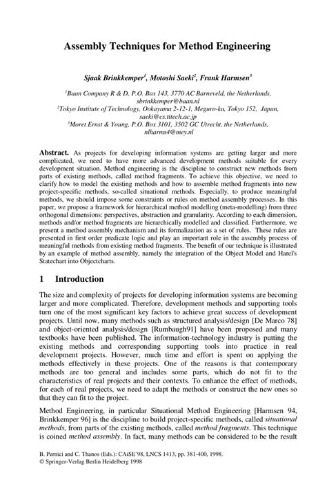 Read Online manual assembly techniques for method engineering Doc online is a convenient and frugal way to read manual assembly techniques for method engineering you love right from the comfort of your own home. Yes, there sites where you can get Doc "for free" but the ones listed below are clean from viruses and completely legal to use.